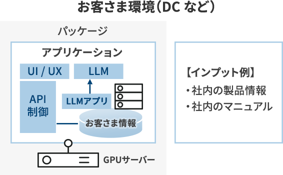 PoCにより機能および効果を確認した後、オンプレミス環境における本格的な業務活用へと段階的に移行可能です。データは自社内で完全に管理されるため、高いセキュリティと柔軟なカスタマイズ性を両立し、厳格なデータ管理要件にも対応できます。