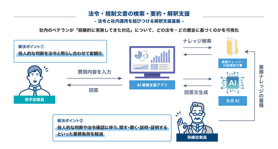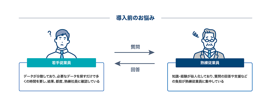 多様化するニーズに応え、タイムリーにサービスを提供し続けるためには、既存の情報やノウハウを最大限に活用し、サービスの品質と価値をさらに高めることが不可欠です。近年、生成AIを活用した業務ナレッジの蓄積や検索を容易にするAIシステムの導入が進んでいます。従来は、業務ナレッジが分散しており、分からないことがあれば熟練者や経験者に確認する必要があり、業務効率の向上が難しい状況でした。しかし、ナレッジの共有化と分析により、業務知識の属人化を抑制し、品質と効率の向上を実現できます。