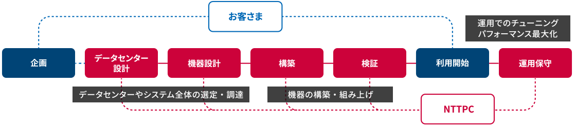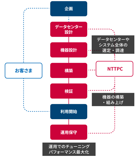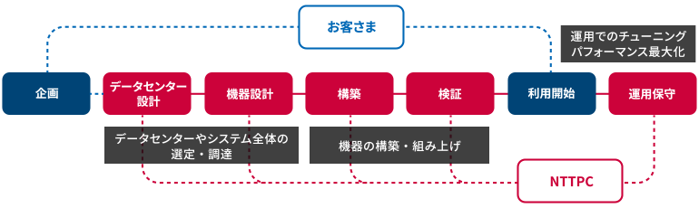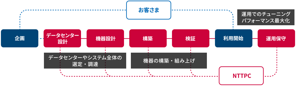 NTTPCは、お客さまのAIプラットフォームの「企画」後の導入プロセスを、
