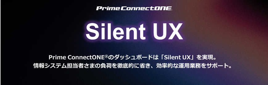 左合:お客さまのアクションや確認回数を極力削減しながら直感的な操作・運用ができるSilent UXを実現します。「Primeダッシュボード」ではエンドユーザー(お客さま)向け機能、Prime ConnectONE®を販売するパートナー向け機能を提供します。エンドユーザー向け機能では異常や問題点の表示色を統一し、直感的に素早く、いま必要なアクションを把握できます。パートナー向け機能ではエンドユーザー毎にドリルダウンが可能で、迅速にエンドユーザーの状態を把握できます。