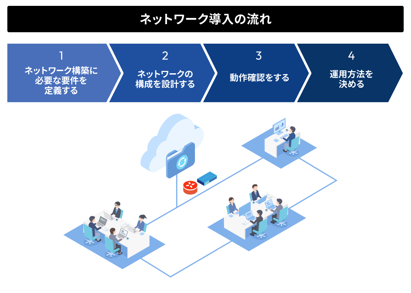 現場の負担を減らし、将来の変化にも対応できるネットワークを整備するために、下記の4つのステップを意識して構築を進めましょう。