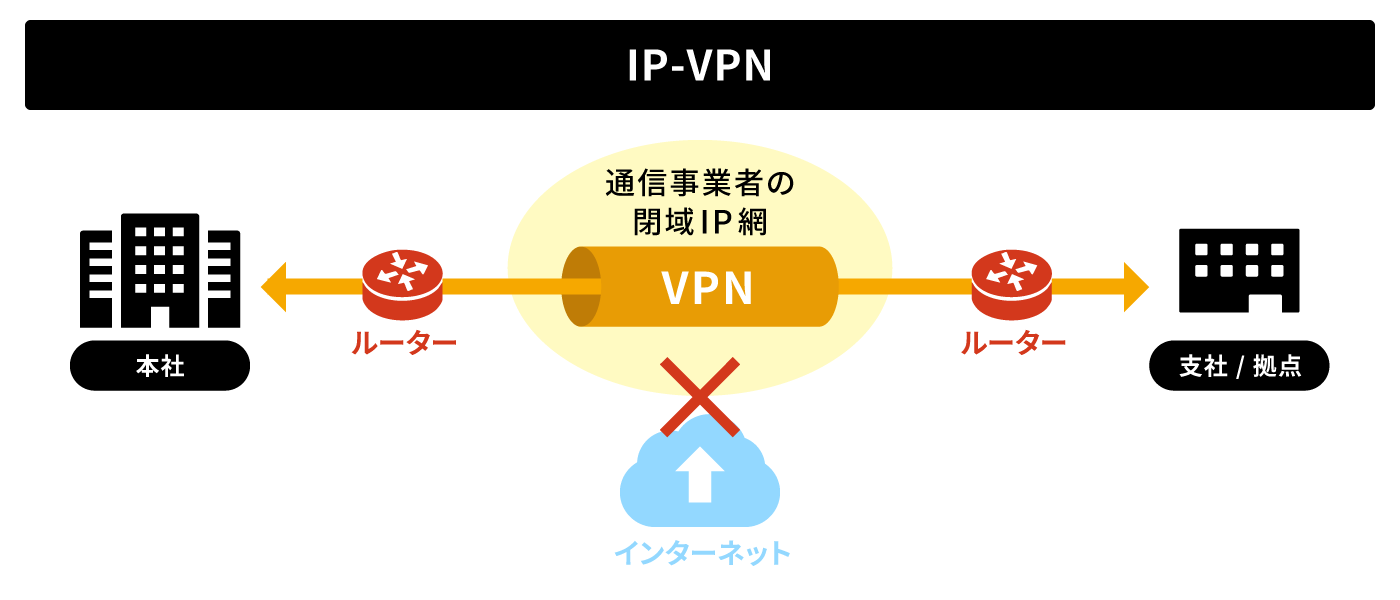 - IP-VPN:通信事業者が提供する、帯域確保型のVPNを利用。比較的安価に利用でき、全国規模の拠点展開に向いている。ただし、インターネットVPNに比べてコストがかかる。