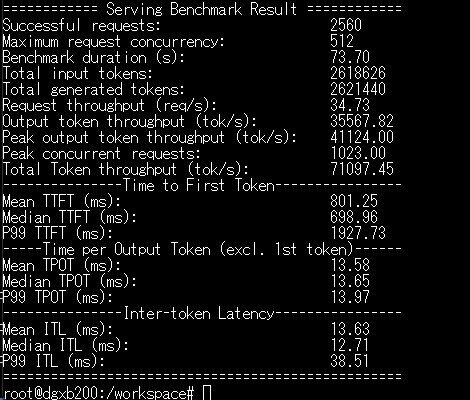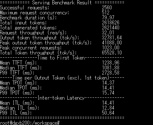 爆速ですね・・・DGX B200は1台でも小・中規模向け推論サーバーとしてはかなり優秀である事がわかりました。