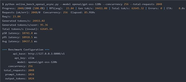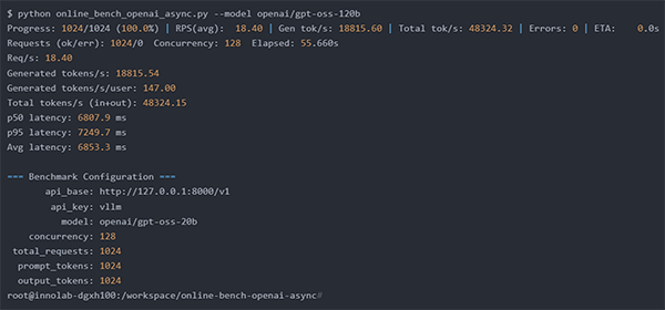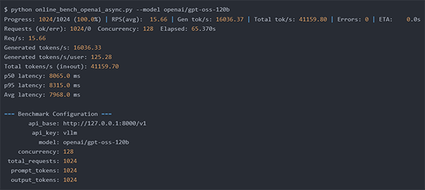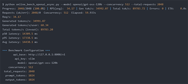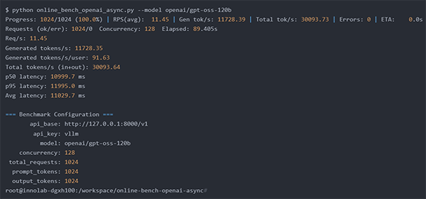 計測上では、総トークンスループットが約37%向上、平均レイテンシは約28%短縮と、前世代のDGX H100を大きく上回る結果になりました。この差はFlashInferによる通信効率化と、MXFP4精度による演算効率の向上によるものでしょう。