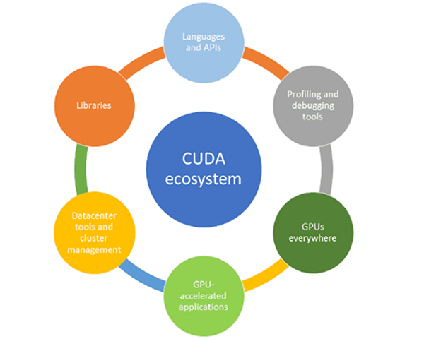 CUDAは、単なる開発ツールやライブラリにとどまらず、GPU活用を実現するための周辺ツールや実行環境までを含めた広義のエコシステムとして設計されています。