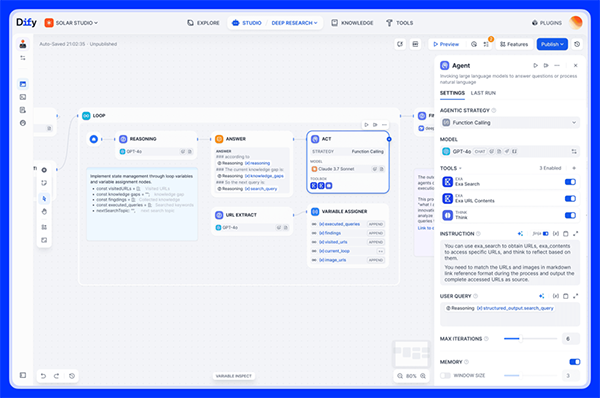 また、クラウドLLMの従量課金モデルでは、利用回数や処理量の増加がコスト面の制約となる場合があります。一定の処理量が継続的に見込まれる環境では、自社GPUを用いたローカルLLM運用が、コスト管理の観点から現実的な選択肢となります。さらに、Difyにワークフローを集約することで、処理手順や前提条件を明確に管理しやすくなります。