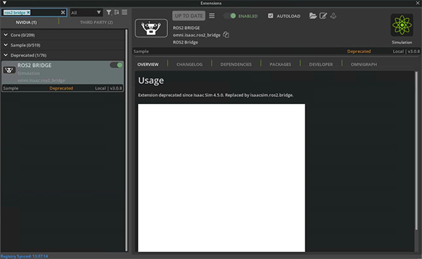 ROS2 BRIDGEがENABLEDかつ、AUTOLOADにチェックが入っていることを確認してください。(無効化されていた場合はこれらを有効化してください)