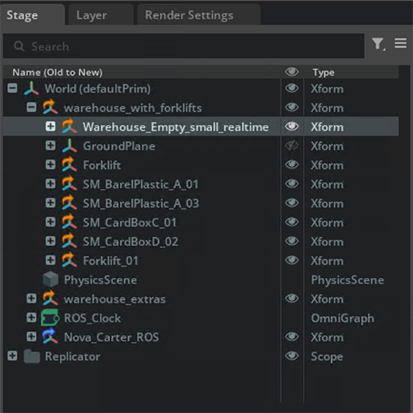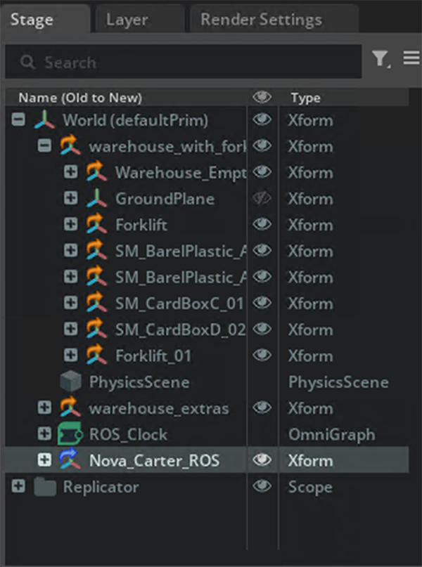 右側のStage > Nova_Carter_ROSを右クリック