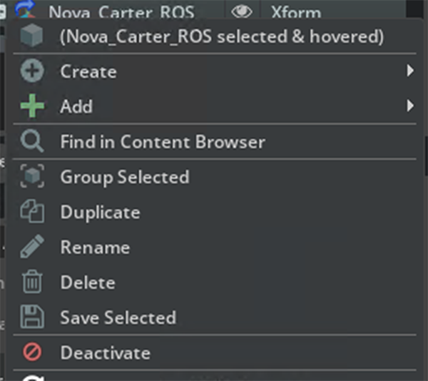 - 右側のStage > Nova_Carter_ROSを右クリック
