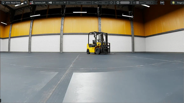 今回のシーンでは、ロボットの進行方向にフォークリフトが近い位置に存在しています。