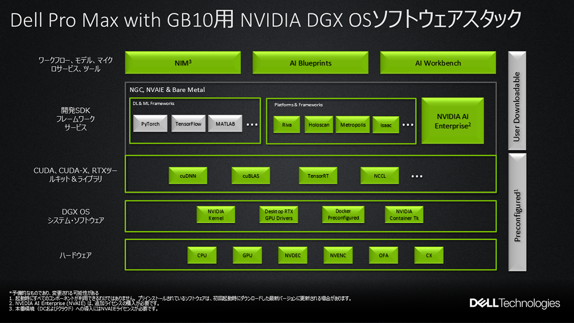 | ソフトウェア | DGX OS 7 (Linuxベース) + NVIDIA AI SWスタック |
