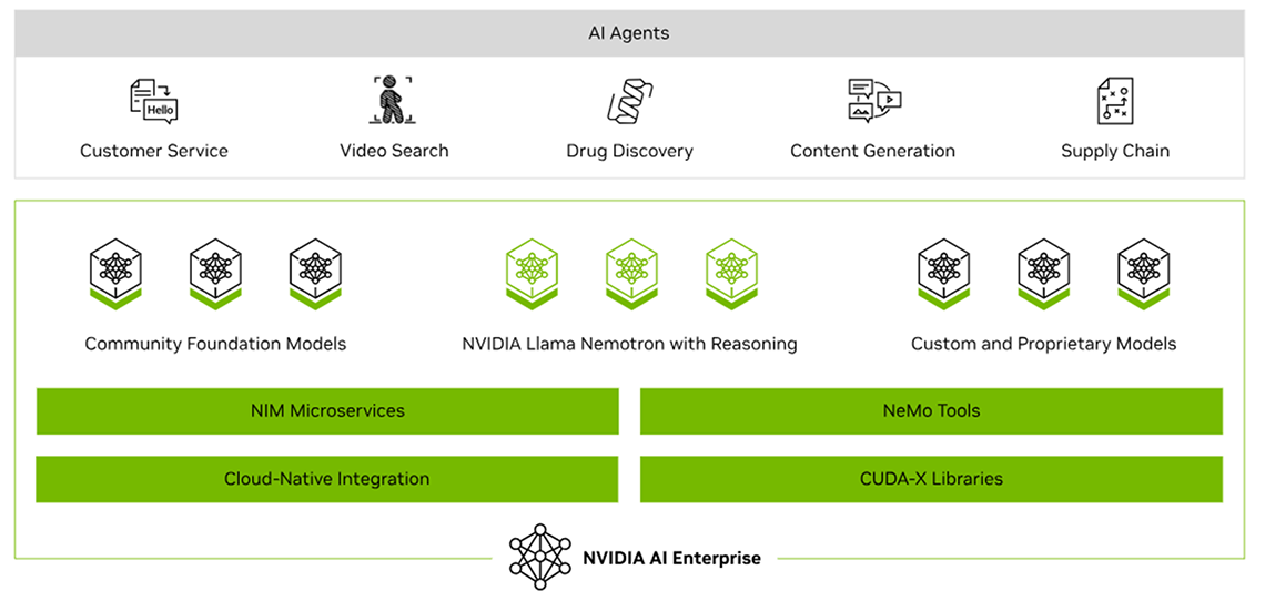 最新のハイブリッドクラウドにおけるAIワークロードの迅速な展開、管理、スケーリングを可能にするNVIDIA の主要な実現技術とソフトウェア、およびエンタープライズサポートが含まれています。