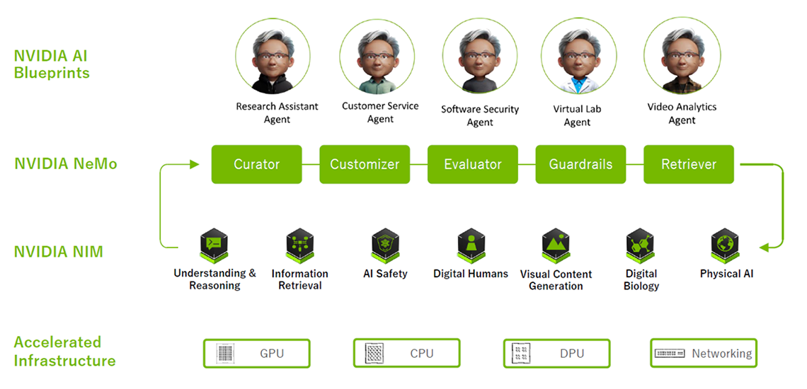 - NeMo Evaluator:生成したAIモデルを評価し性能向上に寄与