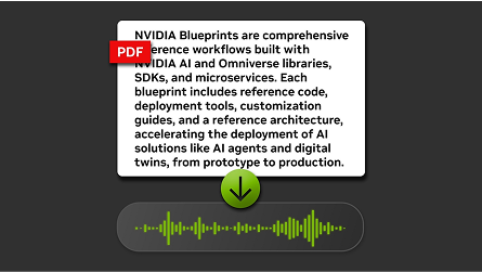 PDF データを、教育用プレゼンテーション、技術ガイド、製品ドキュメントなど、パーソナライズされたオーディオコンテンツに変換します。