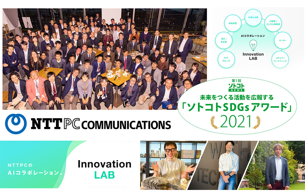 - NTTPCは、AIコラボレーションプログラム「Innovation LAB」にパートナーとして参加するAIスタートアップ企業をエモーショナルな観点から伝える新たな試み「プロジェクトSDGs」について『ソトコトSDGsアワード』を受賞。