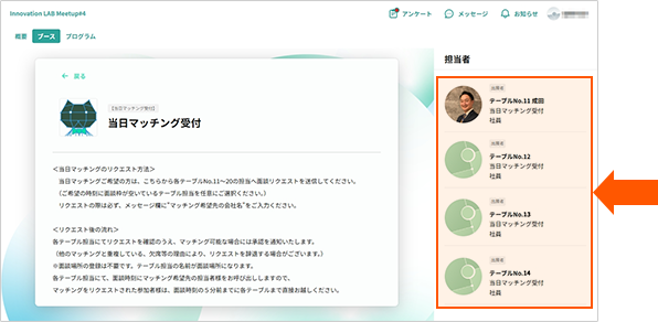 ブースから当日マッチング受付のブースへ