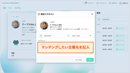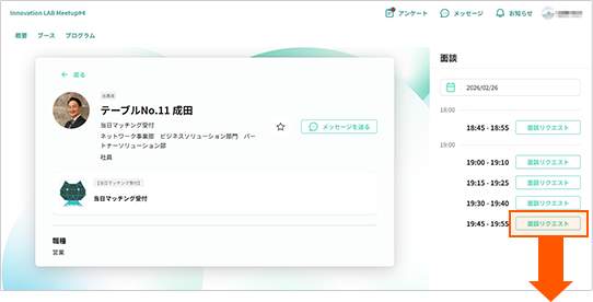 面談枠に空きがあるテーブル担当者を選択し、