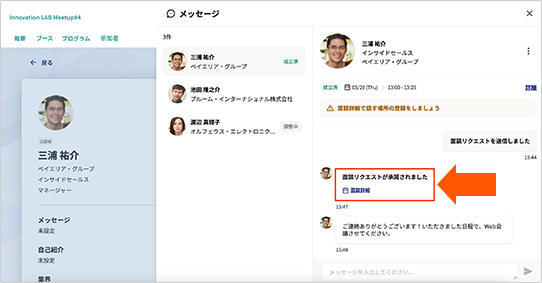 面談開始の5分前には承諾状況のご確認をお願いいたします。