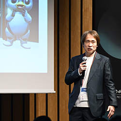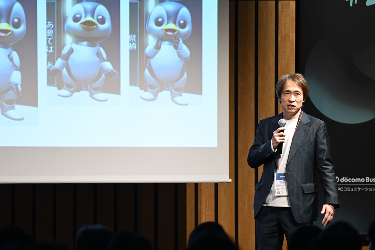 次に基調講演として、大阪大学基礎工学研究科教授 兼 ATR石黒浩特別研究所客員所長の石黒 浩さまをお招きし、「人とアバターが共生する未来社会の実現とビジネス実装」をテーマに、弊社社長の工藤潤一との対談形式で自律型ロボットやアバターがもたらす未来社会についてお話しいただきました。石黒先生はロボット工学がご専門で、近年はアバターを中心とした研究を手掛けられています。また、2025年日本国際博覧会(大阪・関西万博)では、シグネチャーパビリオン「いのちの未来」のプロデュースも務められました。