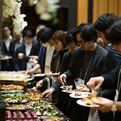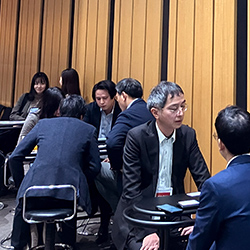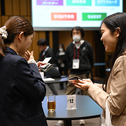 第2部では、さまざまな立場・課題感を持つ来場者間でのマッチングを行う「ビジネス交流会」を開催しました。冒頭でNTTPC常務取締役 友近剛史から、「皆さまが描く未来像を、誰と、どう実現していくかが重要です。NTTPCは皆さまがビジネスで新たな挑戦に取り組むときのパートナーでありたいと考えていて、本イベントを通じて積極的な交流が進むことを期待しています」と挨拶を申し上げました。
