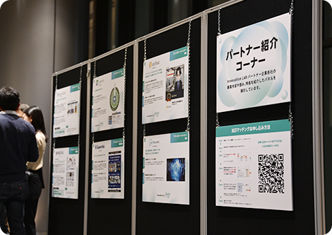 第2部では、ご来場者様同士がスムーズに交流するための「ビジネスマッチング」も実施しました。来場された方が、展示パネルや第1部のショートピッチを通じて興味を持った企業を指名すると、事務局での調整ののち個別に交流ができるという企画です。