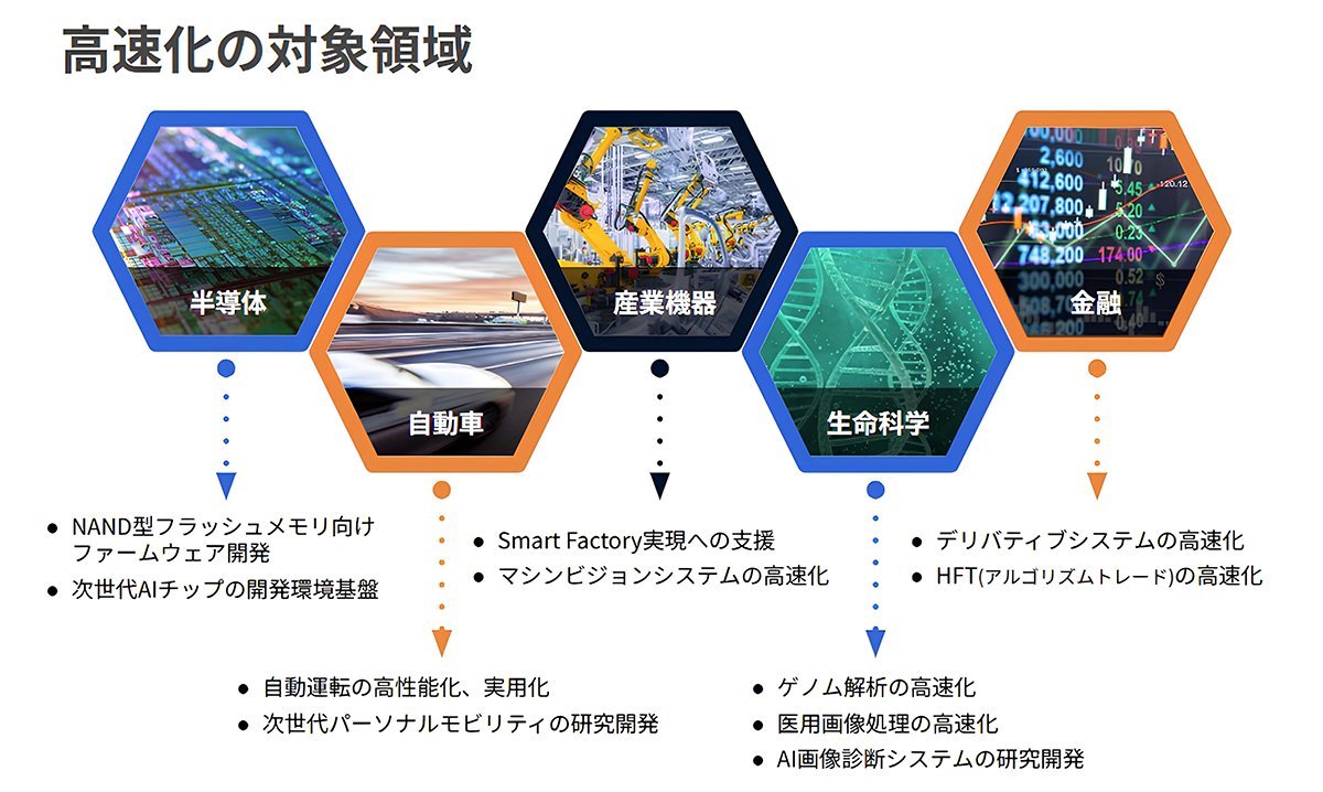 コンピュータの性能を引き出す技術のスペシャリストたちが、高速なソフトウェアを開発します。多くのソフトウェアは、多様な問題・課題の組み合わせによってコンピュータの性能を引き出しきれていません。