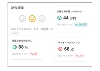 日々の社員のストレスやパフォーマンスの状態をタイムリーに可視化します。