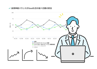 管理者は組織毎の「従業員の健康状態や心理的負荷の状態」の変化を把握できます。また、従業員は自身の仕事中の自律神経の状態から不調や疲れの状態を客観的に確認できます。