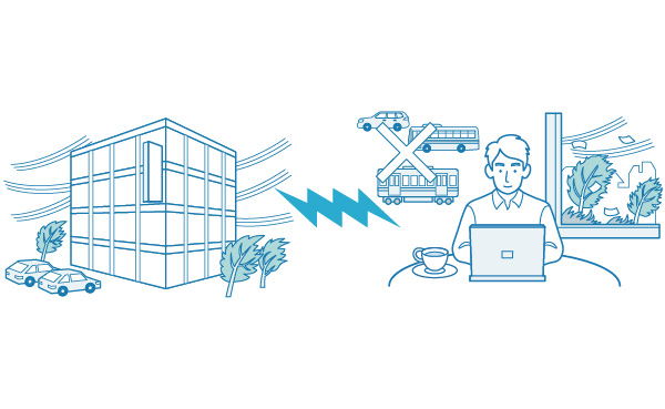 公共交通機関の遮断・悪天候・社員の怪我などによる出社困難時の避難ツールとして利用が可能です。